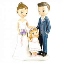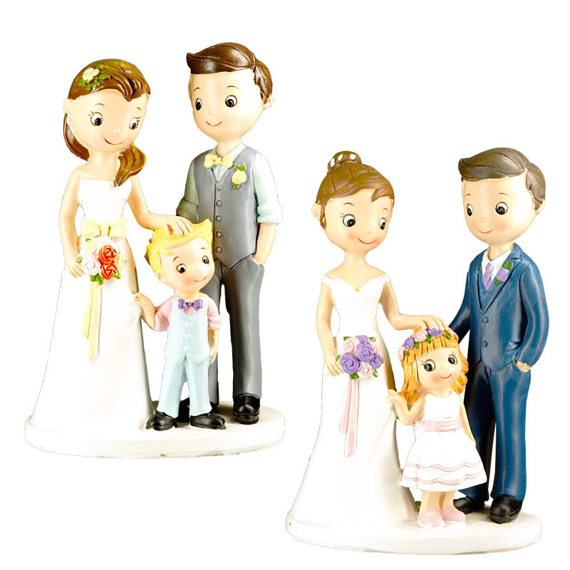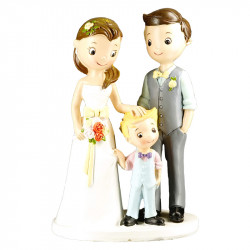 Sujet en résine de 16 cm pour gâteaux et pièces montées de mariage ou décoration de table : Couple avec Enfant, garçon ou fille.
